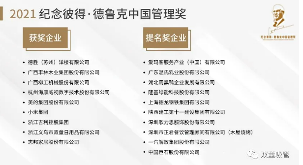 2021雙童榮獲“紀(jì)念彼得·德魯克中國(guó)管理獎(jiǎng)”