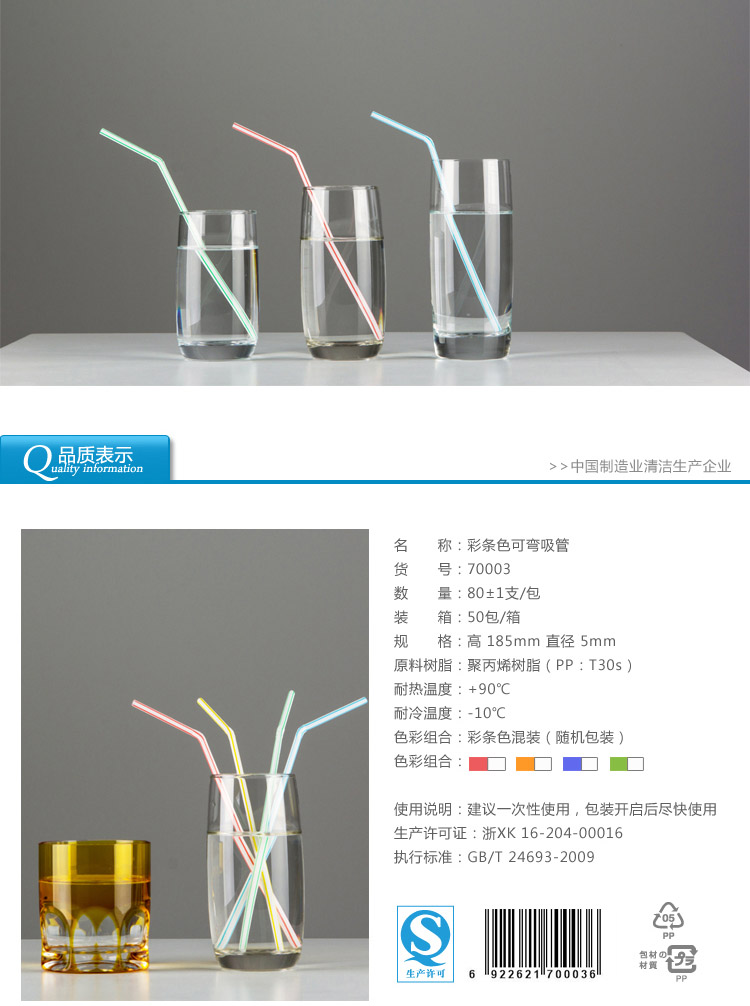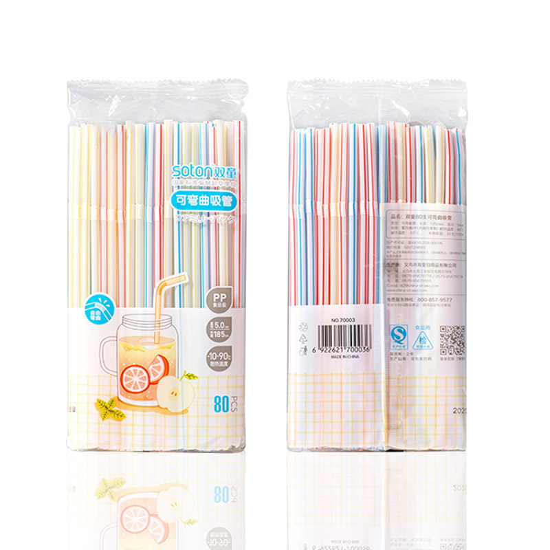 70003雙童80支彩條色普通彎吸管