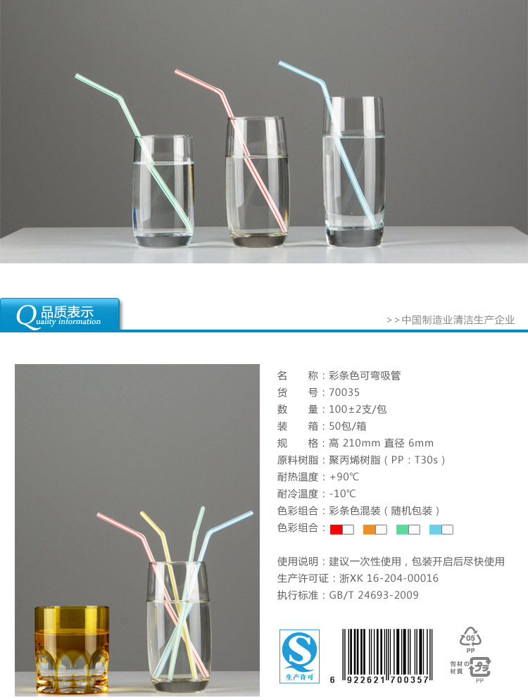 70035雙童100支彩條色家庭裝彎吸管
